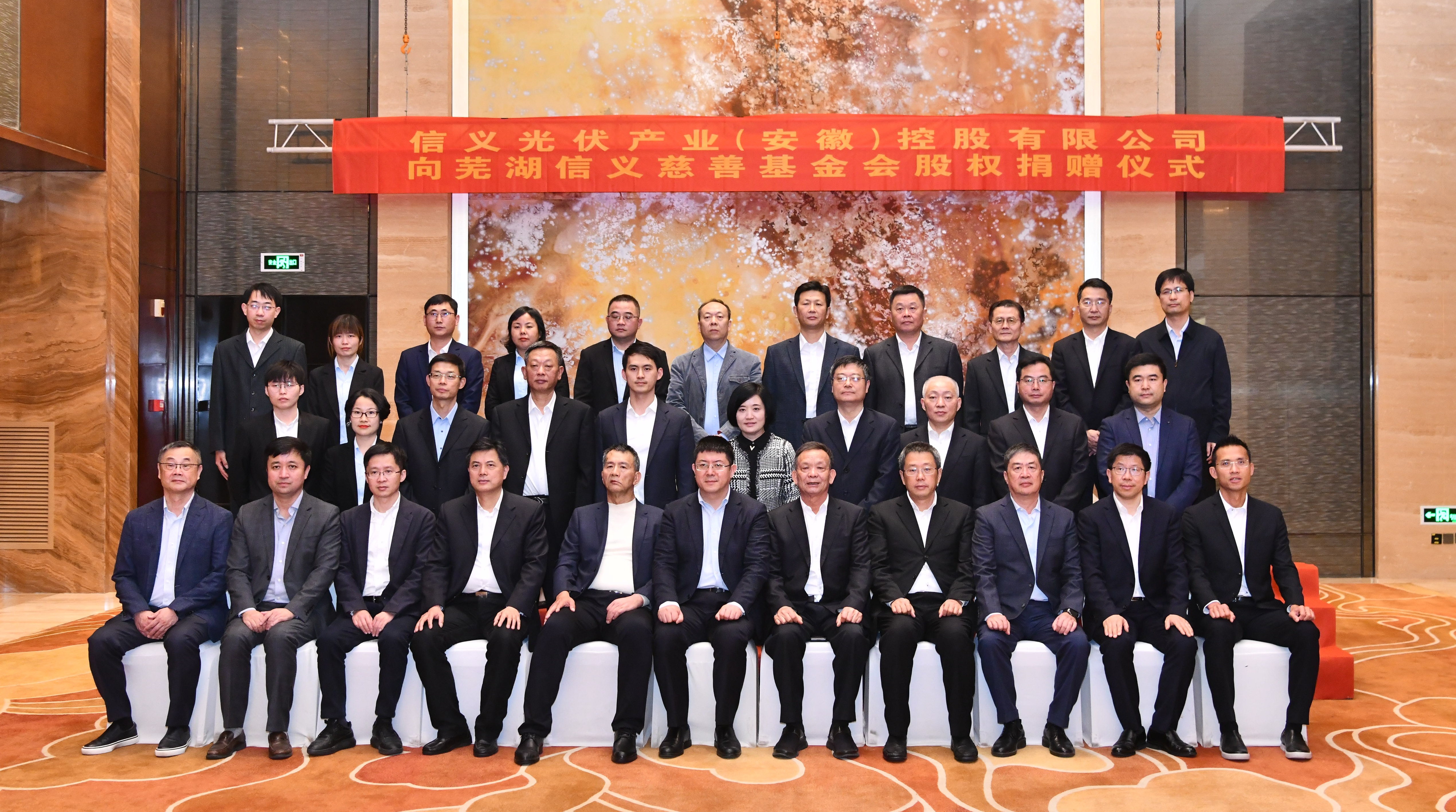 2021年11月4日,信義光伏产业(安徽)控股有限公司向芜湖信義慈善基金会股权捐赠仪式隆重举行。首批芜湖人民城市建设合伙人——信義集团(玻璃)有限公司践行“合伙”初心、献上“信義”之举,由信義光伏产业(安徽)控股有限公司将旗下资产值1亿元人民币的“芜湖信義太阳能科技有限公司”100%股权无偿捐赠予芜湖信義慈善基金会。芜湖市委书记单向前,芜湖市委副书记、市长宁波,芜湖市领导张志宏、杨志斌、张东出席仪式。全国政协委员、芜湖信義慈善基金会荣誉理事长、信義集团董事局主席李贤义,信義玻璃董事局副主席董清波,信義玻璃执行董事兼行政总裁董清世,信義光能执行董事兼行政总裁李友情,信義能源执行董事兼行政总裁董貺漄出席仪式。芜湖市教育局、市民政局、市财政局、市卫健委、市税务局、市红十字会、市慈善总会有关负责同志参加了仪式。